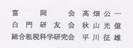 富岡会・高畑公一様 白門研友会・秋山光億様 総合租税科学研究会・平川征雄様