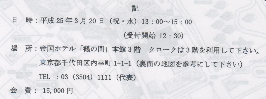 2013年3月20日 午後1時 帝国ホテル 「鶴の間」 本館3階