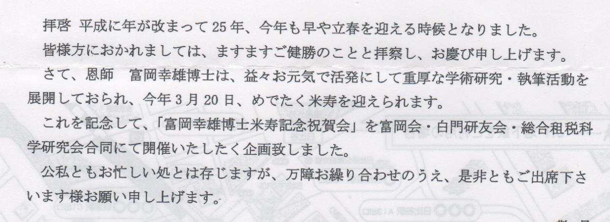 「 その後も元気に老年を謳歌しておられることと存じます。