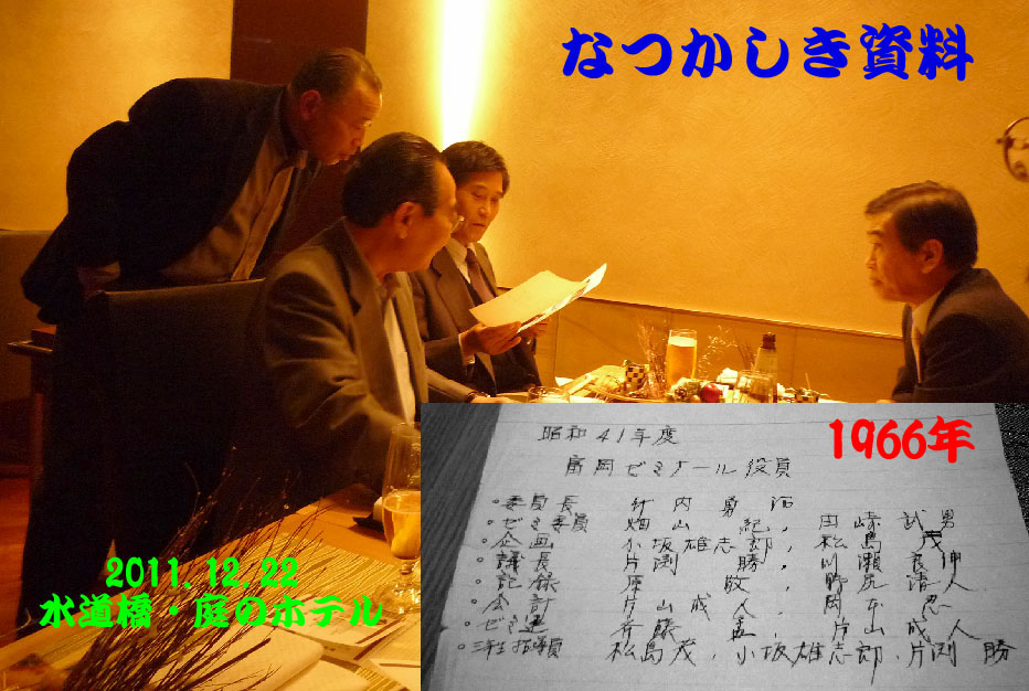片淵、鎌田、小坂、斉藤、竹内、田崎、原 全員ぼけも無く再会できて良き忘年会となりました。